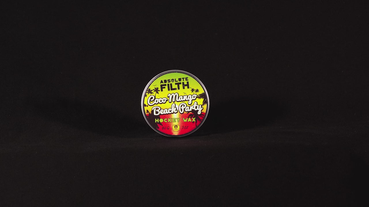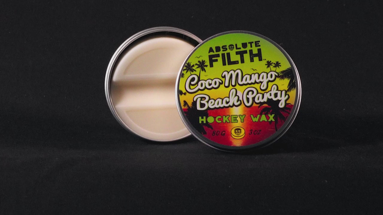 Like all Absolute Filth waxes, Coco Mango Beach Party uses our blend of all-natural waxes. Each is chosen for a specific purpose, to make your tape last, and to give you command and control over the puck. Protected by our famous screw top tin your Coco Mango Beach Party will always be nice and clean, sand and grit belong on the beach not your hockey wax.
